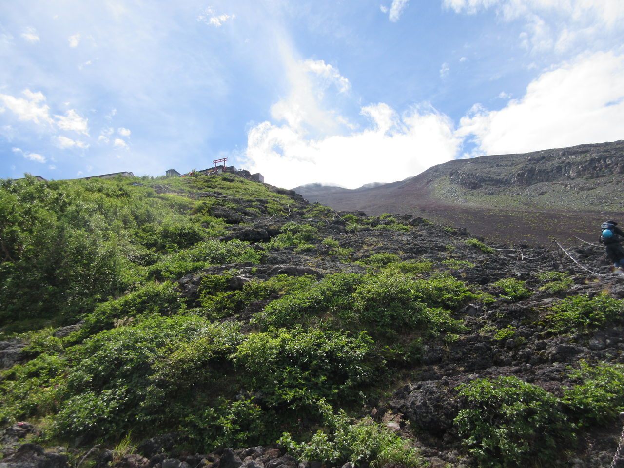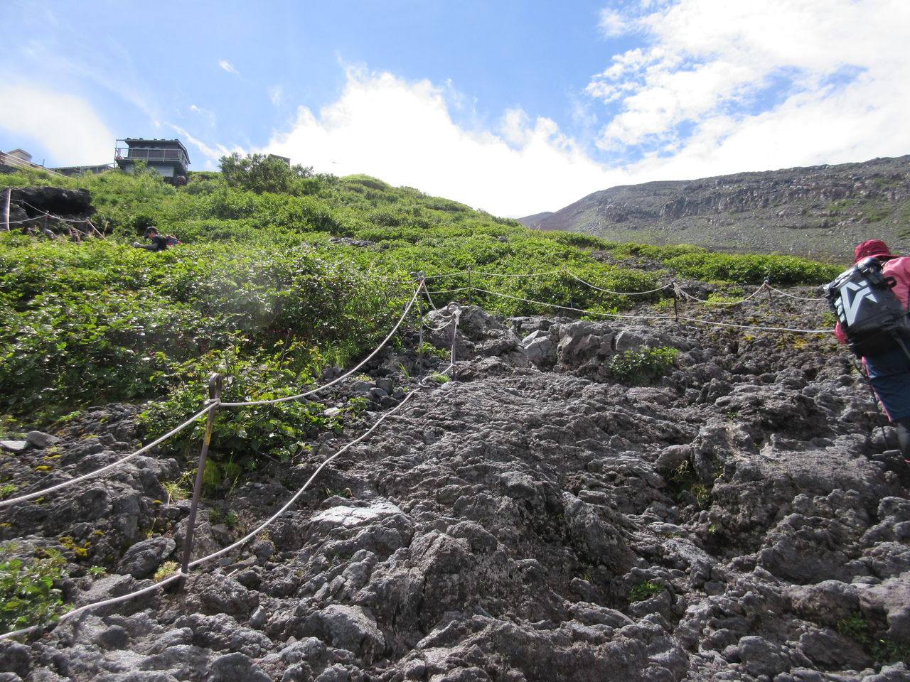 7合目からは山小屋が立ち並んでいますが、7合目手前から8合目までは岩場の急登が続きますので岩場を登ったことのない登山客は引き返しています。