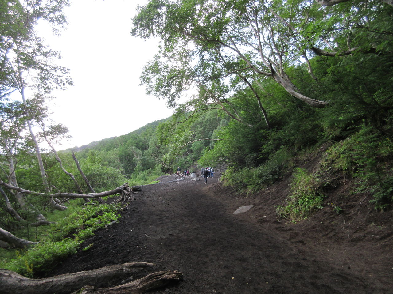 風邪をひきたくなかったため速足でブルドーザーのジグザグ下山道を下っていきましたが、これが長いのです。何回ターンしても6合目に到達しないのです。多くの登山者が急ぎ足で下っていきましたが、6合目は遠かったです。案内所のある6合目に到達したときはほっとしました。