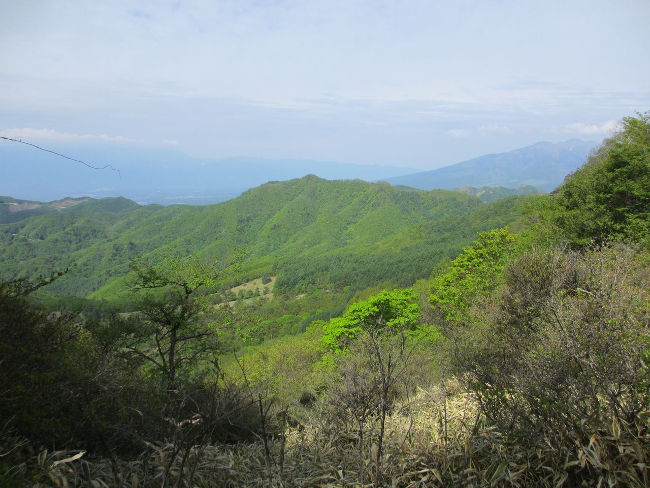 山頂に到着すると千葉から来た3人の方たち(女性2人と男性1人:男性はシニア世代)が先に到着しており、座って休んでおられました。山頂からの眺めも良かったですが、やはり途中の稜線から望む大展望は最高です。新緑の雄大な山々が周辺に広がっていました。そこから瑞牆山も見えました。