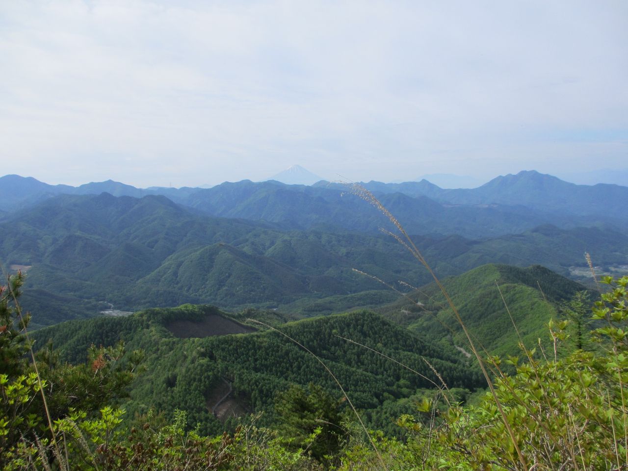 でも、さすがに山頂からの眺めは素晴らしかったです。そこで40分くらい休んだのち、同じルートを”よじ”下り続けました。下山途中で木々の隙間から富士山が遠くに見えていました。